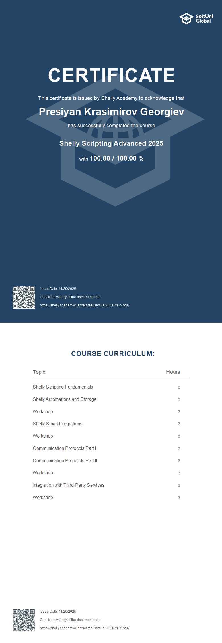 This certificate is issued by Shelly Academy to acknowledge that