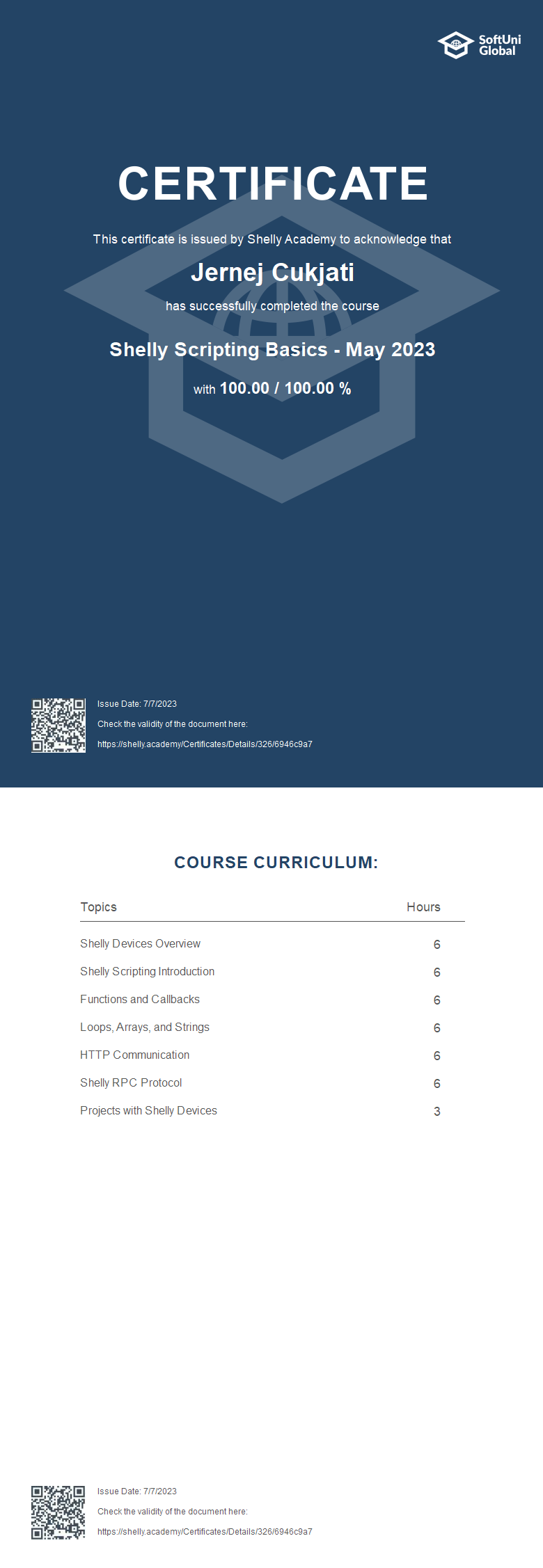 This certificate is issued by Shelly Academy to acknowledge that